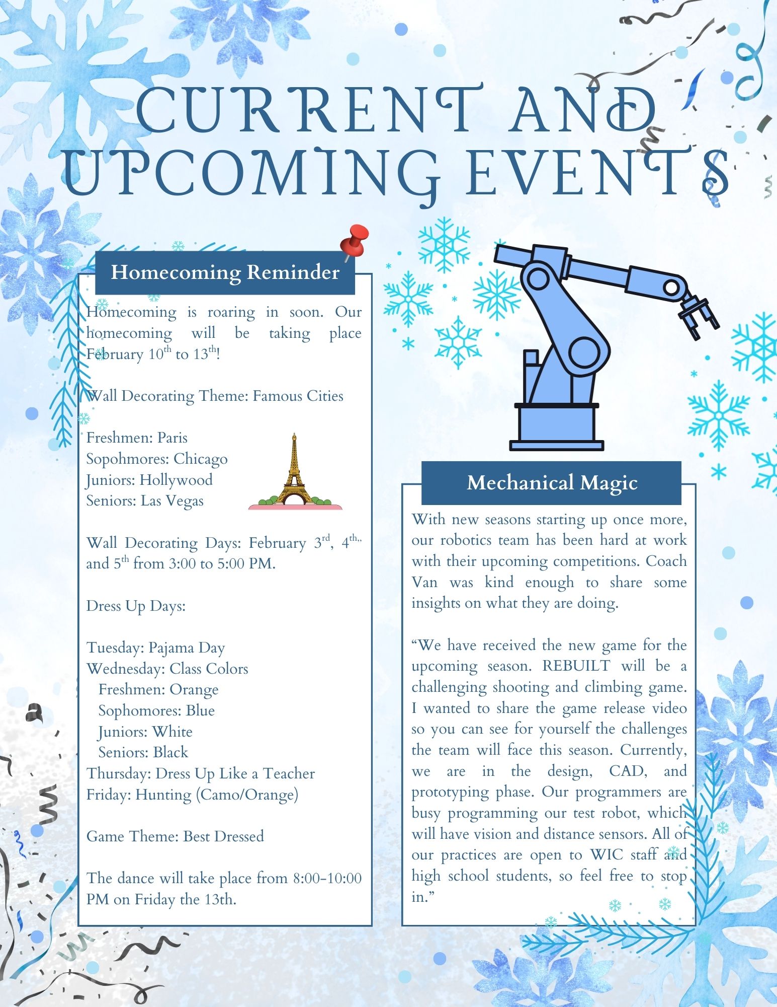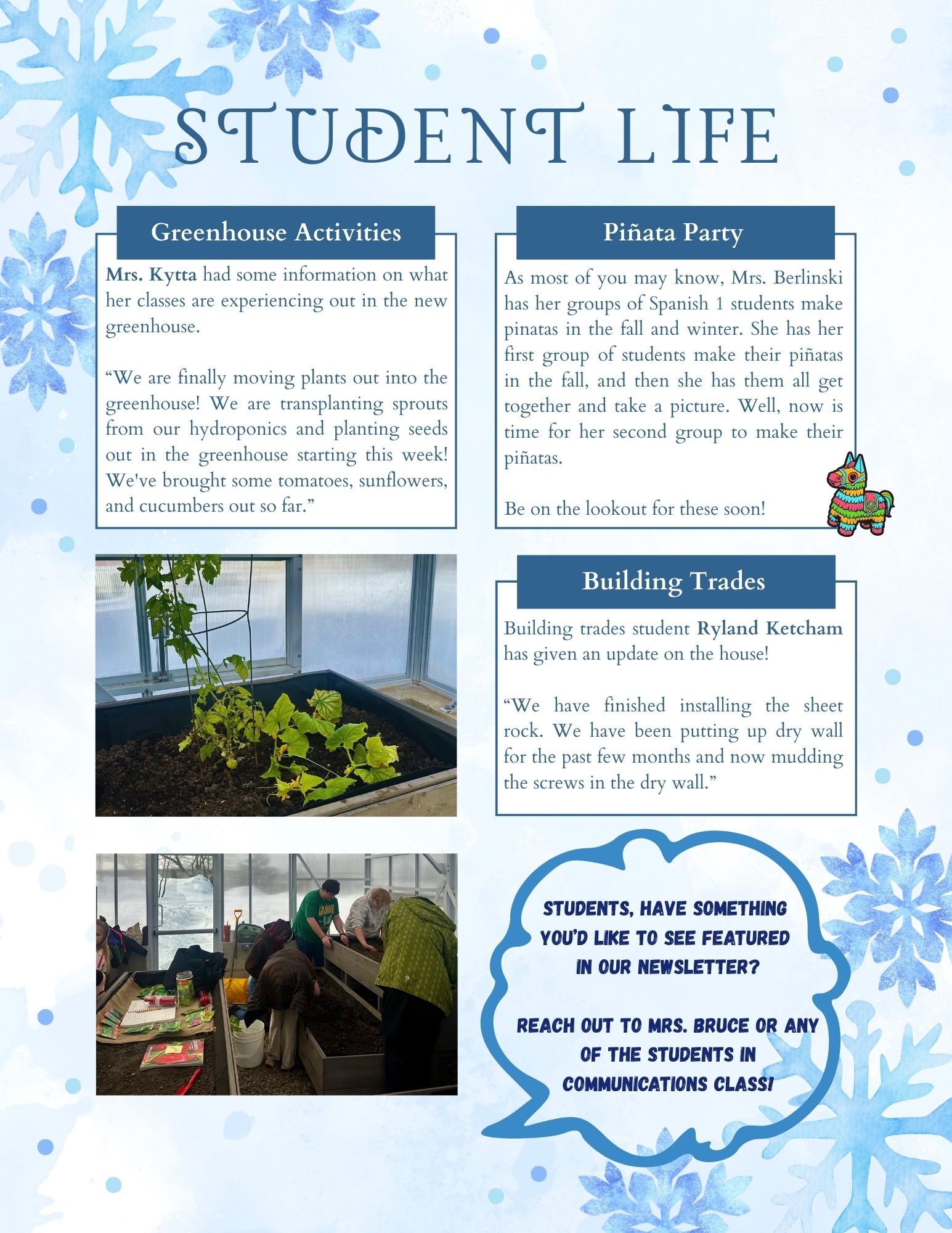High School Communications Class Monthly Newsletter