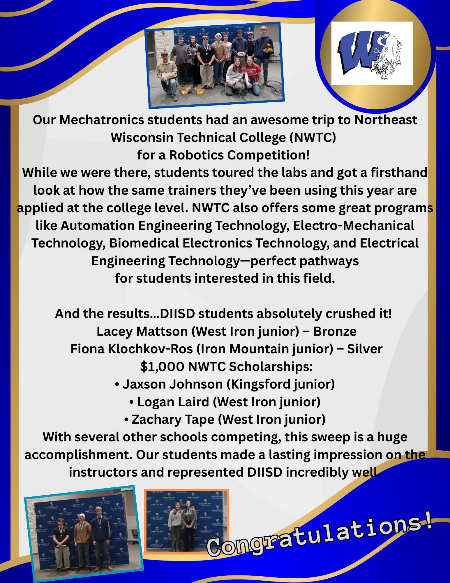 We have a strong history of athletics, band, cheerleading, Quiz bowl, Robotics, and various clubs.